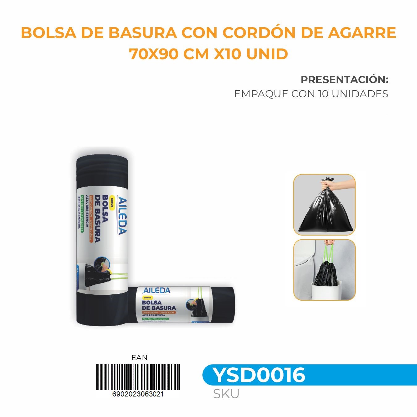 BOLSA DE BASURA CON CORDÓN DE AGARRE 70X90 CM X10 UNID